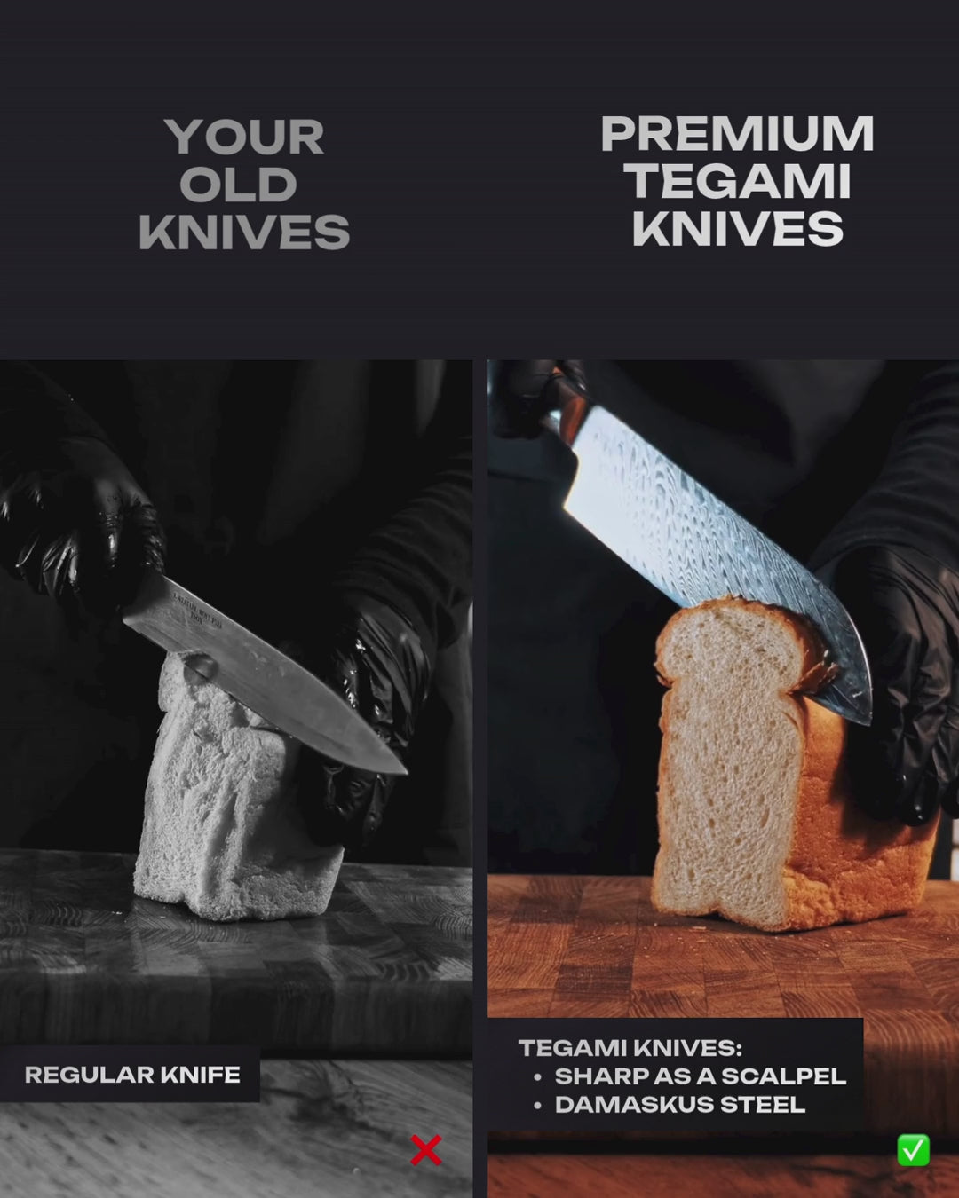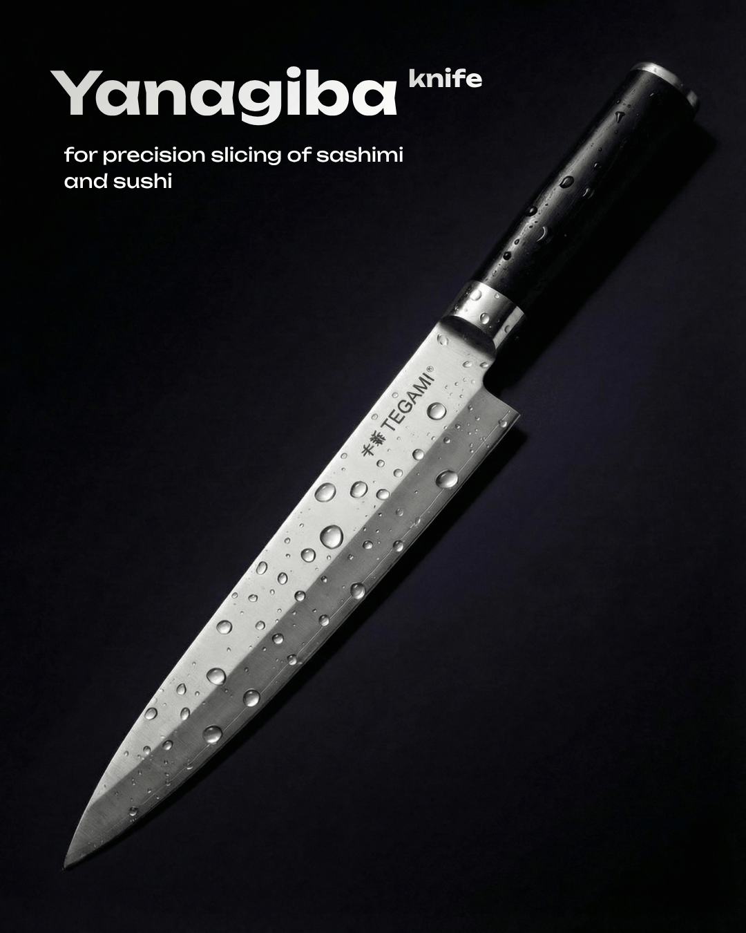 TEGAMI knives are precision instruments designed for cutting boneless meats, fish, vegetables, and fruits. Cutting frozen foods, bones, or hard-shell items may damage the blade, and such damage is not covered under our lifetime warranty.